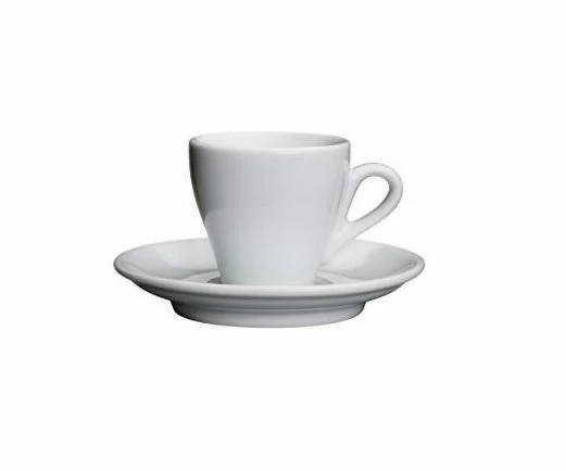 Weiße Cappuccinotasse mit Untertasse von der Firma Pons.